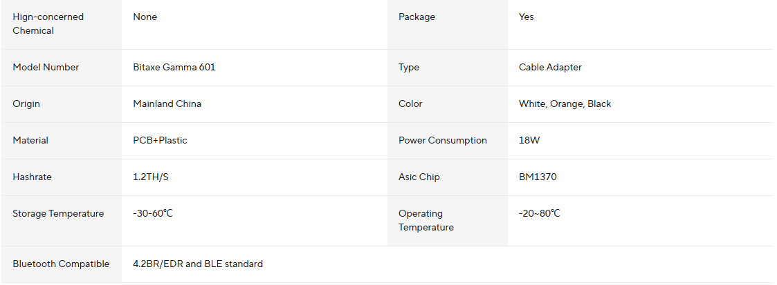 DescriptionReport Itembitaxe Gamma 601 Solo Lucky Miner Crypto Miners 1.2th / S BM1370 ASIC Chip 18W Open Souce Home Use Lottery Machine